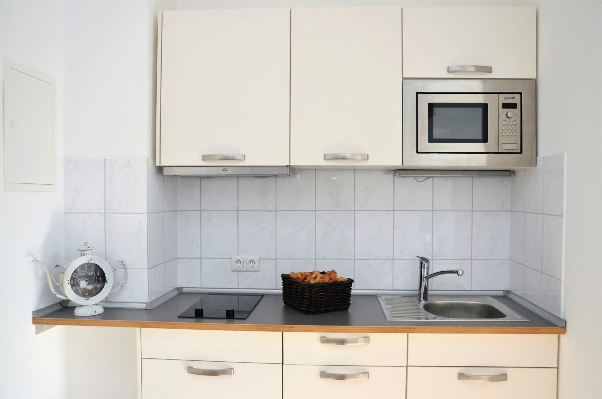 Renoviertes 1-Zimmer-Apartment mit geschmackvoller Einrichtung, komplett möbliert, Singleküche, Duschbad, Kabel-TV, Telefonanschluss, Internet-W-Lan, Hausrat (Geschirr etc.)