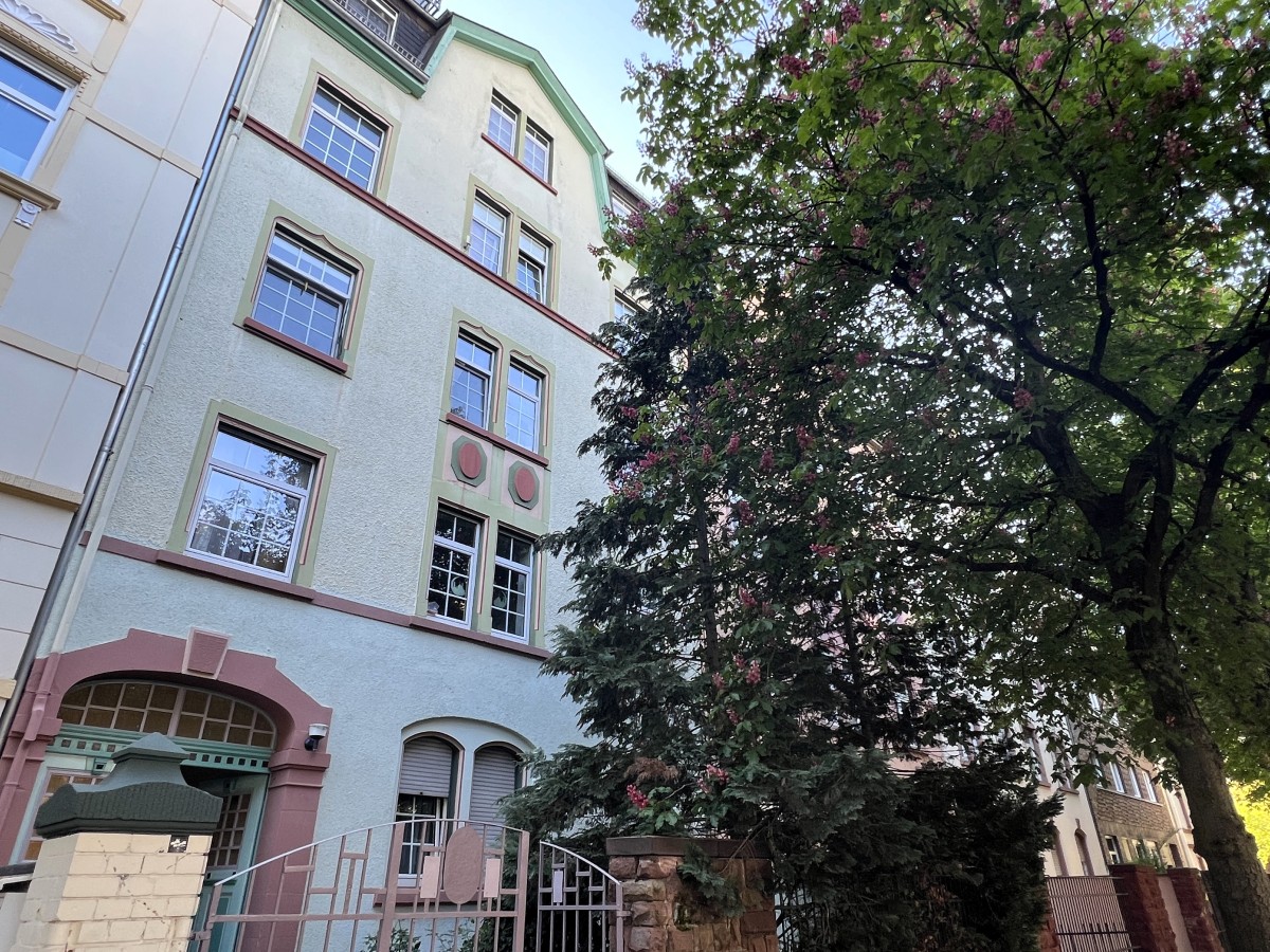 Das gepflegte Mehrfamilienhaus ist unterteilt in ein Vorder- und Rückhaus. Die Wohnung befindet sich im ansehnlichen Altbau-Vorderhaus.